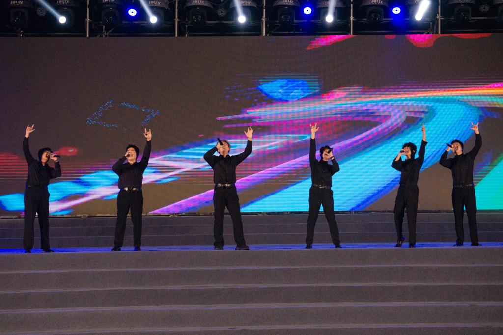 当战鼓般的节奏响起,龙狮社的同学们精彩亮相,晚会正式“燃”起来了!开场歌舞《一路花开》寓意美好,悠扬的器乐合奏《最爱》倾诉青年学子对美好事物的执着追求,为“追梦”之旅注入了温暖底色;深情的小合唱《我爱你中国》唱出家国情怀;炸裂的街舞《We Rock》秀出青春态度;独唱《承诺》诠释了责任与坚守;歌曲联唱从《我很快乐》到《都选C》,简直就是一场大型青春BGM现场;舞蹈串烧《有我》《女驸马》《中国范》《送你一朵小红花》巧妙融合了古典韵味与现代风尚;歌曲联唱《超越梦想》《亚洲雄风》《歌唱祖国》用激昂的旋律和豪迈的歌声,回顾峥嵘岁月,展望辉煌未来;舞蹈《AI我爱》以创新的形式将科技与艺术相结合,展现了青年学子面向未来、勇于探索的先锋姿态;朗诵《我们都是追梦人》则发出了青年学子的铿锵誓言;晚会在大合唱《追逐梦想》中落下帷幕,绚丽的烟花将晚会气氛推向最高点,完美诠释了“追梦不息,逐光而行”。