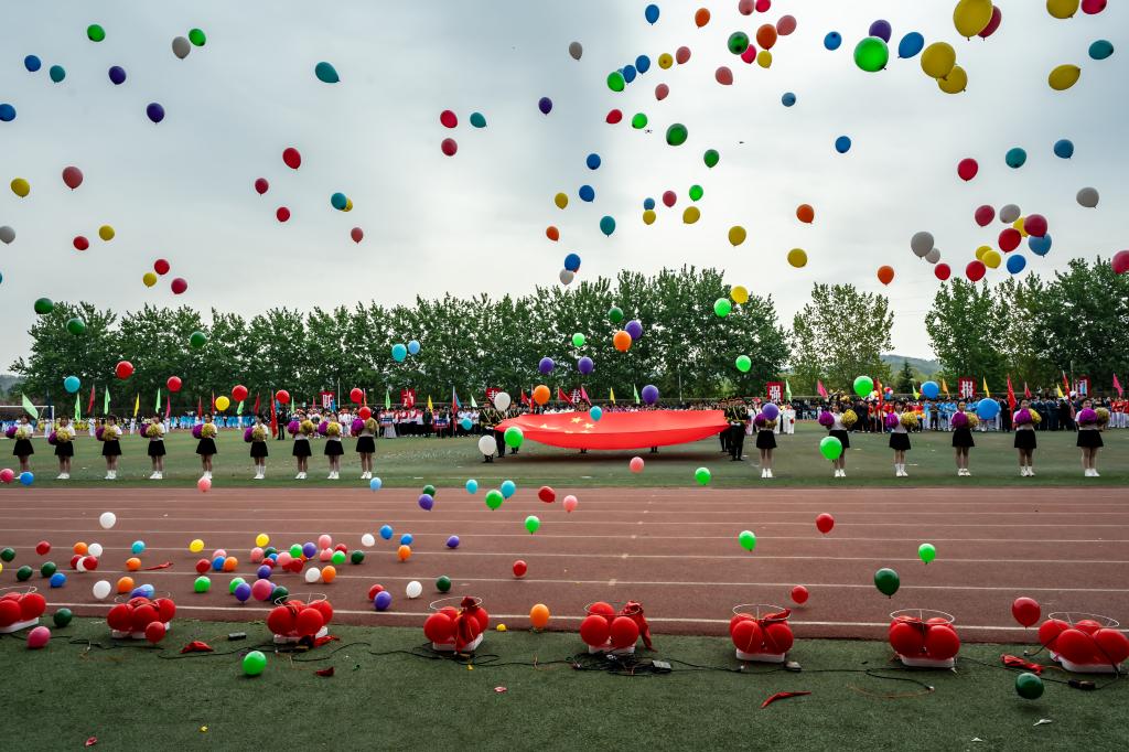 入场式后,庄严的升旗仪式开始。国歌奏响,五星红旗冉冉升起。全体师生肃立齐唱,民族自豪感与爱国热情在每个人胸中激荡。
