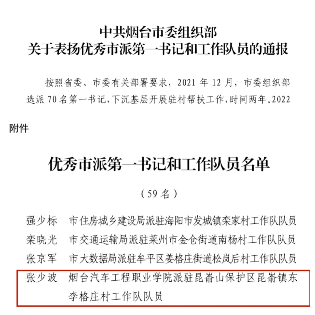 1月4日,烟台市委组织部组织召开了全市部门包村和第一书记工作会议,对39名优秀驻村第一书记和20名优秀驻村工作队队员予以通报表扬。我院选派的驻村工作队队员、财务审计科科长张少波荣膺受表彰行列。