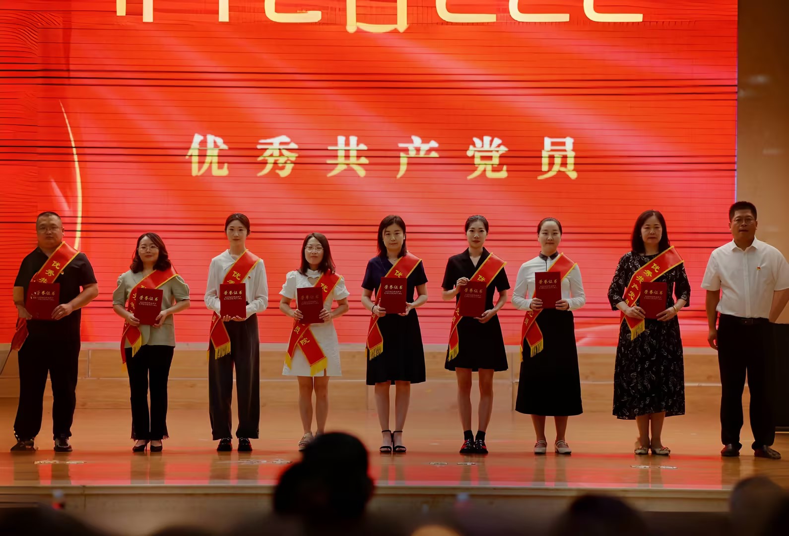 为表彰先进、激励斗志,学院党委决定授予孙圣雅等71名共产党员“优秀共产党员”称号,授予郭伟红等13名党务工作者“优秀党务工作者”称号,授予第一党总支等13个党组织“先进基层党组织”称号。会上,秦桂建为学院退休老党员颁发“光荣在党50年”纪念章,观看了“两优一先”典型事迹专题片《凝聚奋进力量 榜样引领前行》,领导班子成员为受表彰代表颁奖。