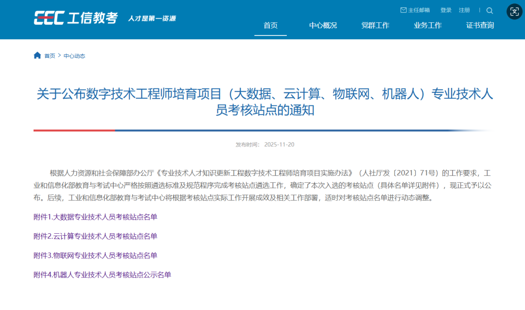 近日,工业和信息化部教育与考试中心依据人力资源社会保障部《专业技术人才知识更新工程数字技术工程师培育项目实施办法》相关要求,遴选并公布了数字技术工程师培育项目考核站点入选名单。烟台汽车工程职业学院成功入选大数据技术、云计算技术、物联网技术、机器人技术四大领域考核站点,实现数字技术核心方向考核站点的“全覆盖”。