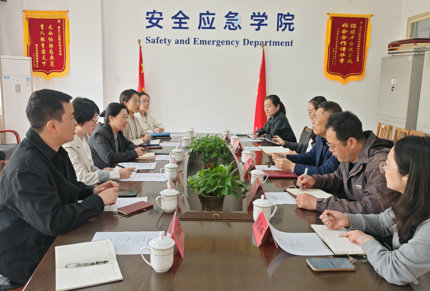 实地调研结束后,双方召开专题座谈交流会,聚焦安全类专业发展痛点、难点精准对接、深入研讨。会上,董书华详细介绍了安全应急系的办学特色,重点分享了该系推行准军事化管理的实践举措,系统讲解其与安全行业岗位需求的适配性及对学生职业成长的正向助力。双方围绕人才培养方案优化、准军事化管理落地、实训基地建设等关键问题坦诚交流、取长补短,在专业内涵建设等方面达成诸多共识,切实达到了互学互鉴、共同提升的交流目的。